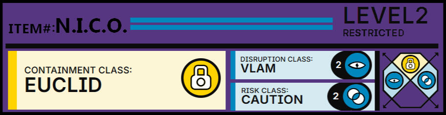 Despite this drastic change, SCP-N-I-C-O does not appear distressed, instead describing the transformation as an "understanding." Personnel who witness this event report an overwhelming sense of unease, though no immediate harm has been observed.